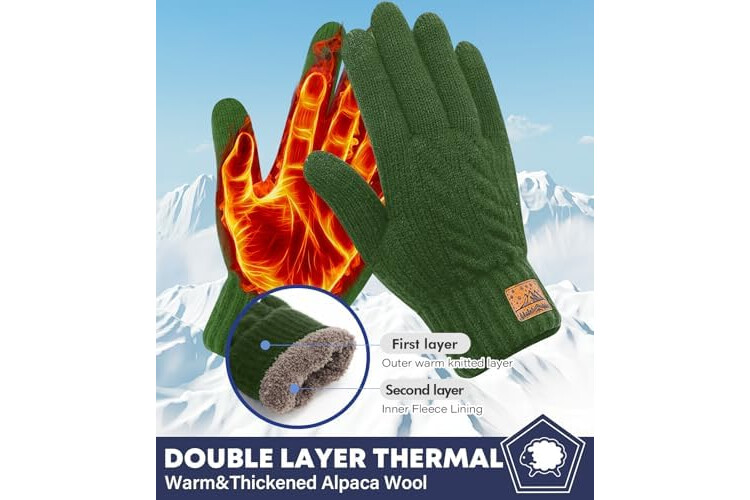 Winter Gloves for Men Women-Warm TouchScreen Cold Weather Gloves,Wool Knit Thermal Adults Gloves for Driving Texting
