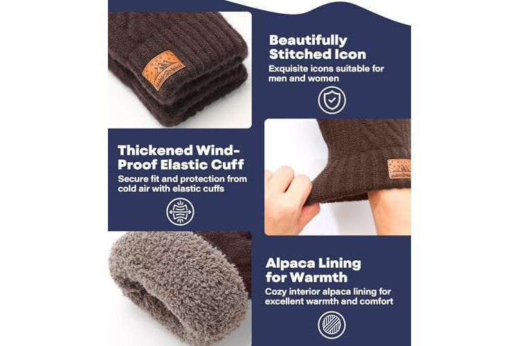Winter Gloves for Men Women-Warm TouchScreen Cold Weather Gloves,Wool Knit Thermal Adults Gloves for Driving Texting