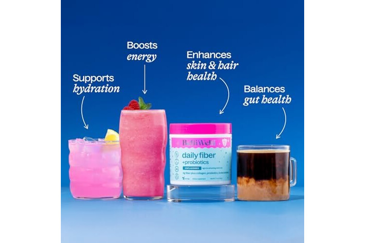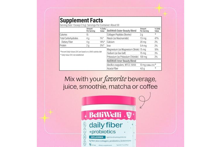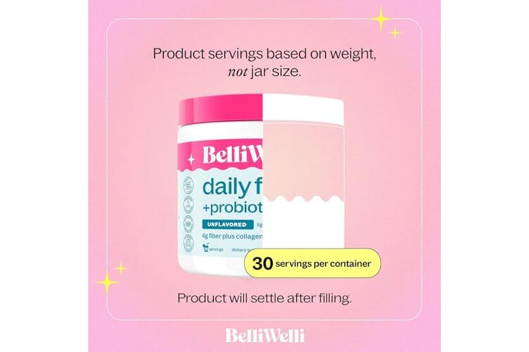 Belli Welli Unflavored Daily Fiber Supplement Powder with Collagen, Probiotics & Electrolytes | Supports Digestive Health, Gut Balance & Debloating, Sugar Free | 30 Servings