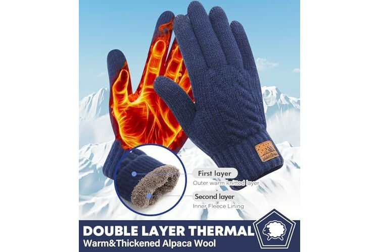Winter Gloves for Men Women-Warm TouchScreen Cold Weather Gloves,Wool Knit Thermal Adults Gloves for Driving Texting