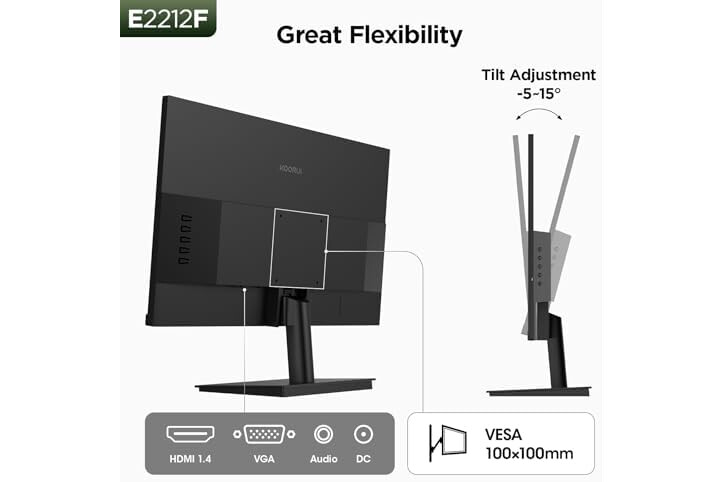 KOORUI 22 Inch Computer Monitor Full HD 1080P 100Hz PC Gaming Screen VA Panel Ultra-Slim Display 3000:1 Contrast Ratio with Adpitive Sync (HDMI/VGA/VESA Compatible 100x100mm/Audio Out), Tilt, Black