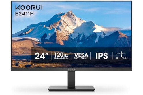 KOORUI 24 inch Monitor 120Hz, Full HD 1920 * 1080p IPS Ultra-Thin Computer Monitor, 99% SRGB Color Gamut, VESA 100 * 100mm Mountable,Tilt Adjustable,HDMI & VGA Ports,Black, E2411H