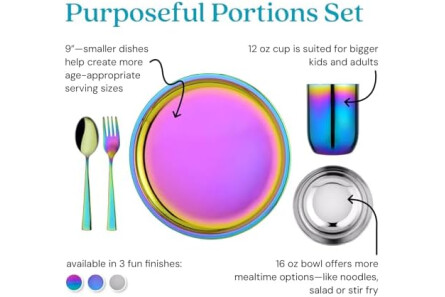 PEDIATRICIAN-DESIGNED FOR GROWING KIDS: Created by a pediatrician and mom, this reusable stainless steel kids dinnerware set supports healthy eating habits and growing independence. Each piece is MADE SAFE certified, non-toxic, and free from BPA, PVC, phthalates, melamine, and lead — a safer, non-plastic choice for everyday meals.