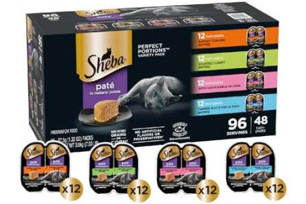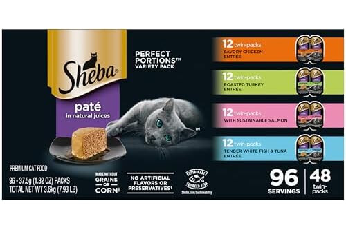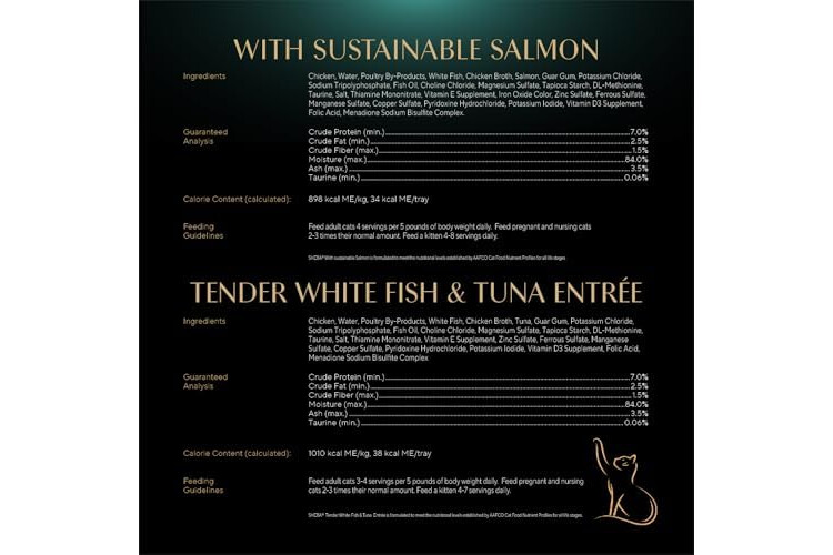 Cats know what they want: the delicious taste of Sheba wet cat food. Sheba Perfect Portions Wet Cat Food has irresistible flavors inspired by your own favorite culinary delights. These savory paté cat food recipes are made with savory Chicken, roasted Turkey, sustainable Salmon, or Whitefish & Tuna. Sheba Perfect Portions Wet Cat Food has two convenient, portioned trays for a delicious serving every time. This grain-free wet cat food contains no artificial flavors or preservatives; trace amounts may be present due to cross-contact during manufacturing. Even the pickiest cat is sure to enjoy this wet cat food paté in natural juices. We believe that truly irresistible wet cat food comes not just from expert preparation but from select ingredients that are sourced with care. Therefore, the Sheba brand is committed to sustainably sourced fish in its recipes. Visit Sheba.com/sustainability for details.