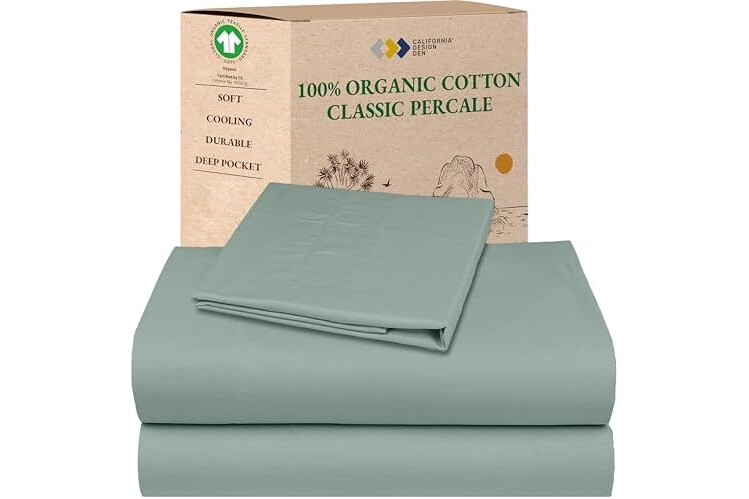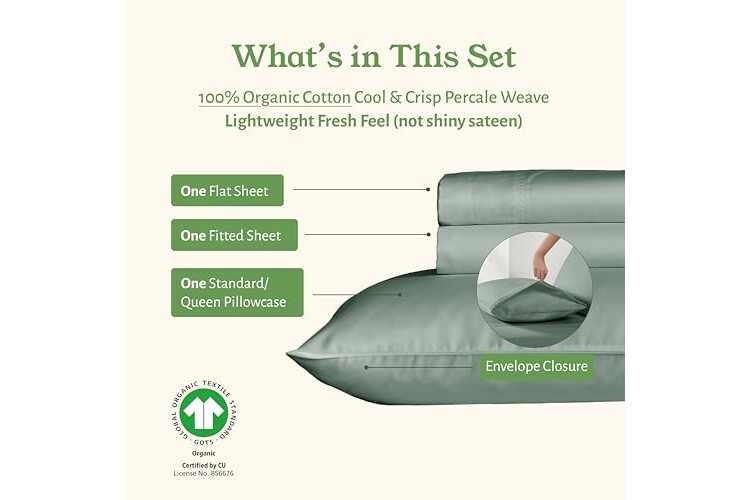 GOTS Certified 100% Organic Cotton Sheet Set - Classic Percale Sheets. Gentle on skin, these 100% organic cotton sheets twin XL deep pockets set is made using 100% organic cotton percale fabric and offers a balance of crispness and breathability. These durable bed sheets have a beautiful matte finish and a crisp touch.
