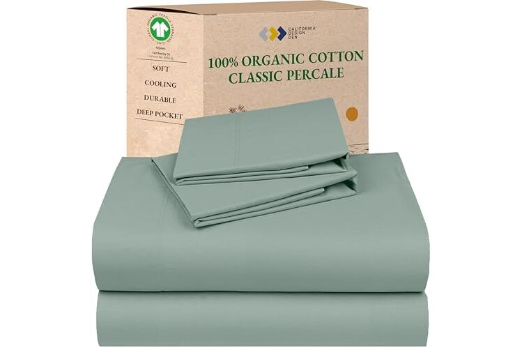 California Design Den Cal King Sheet Set - Soft 100% Organic Cotton, Crisp and Cool Percale Sheets, Deep Pockets with Anti-Skid Elastic, Breathable and Durable Bedding Set - Sage Green