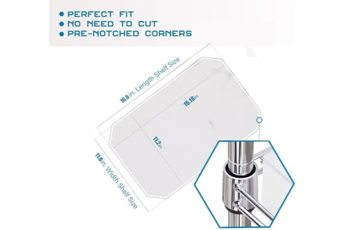 【Value Pack】Set of 5 shelf liners (11.22" x 16.18"), fits most brands of 11.8" x 16.6" wire shelf. The 4 corners with custom cutouts perfect fit with standard wire shelving system.