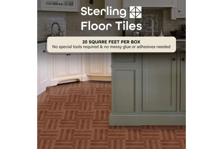 Sterling Vinyl Tiles: Refresh your home for a low cost and no hassle with the Sterling Vinyl Floor Tiles. Our tiles can be used in any room in your home from the kitchen to the bedroom. No messy glue or adhesives needed. Includes 20 vinyl tiles.