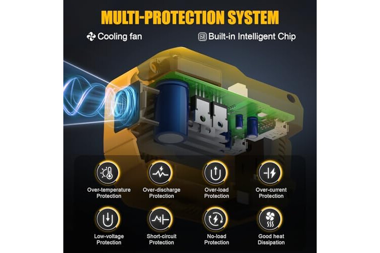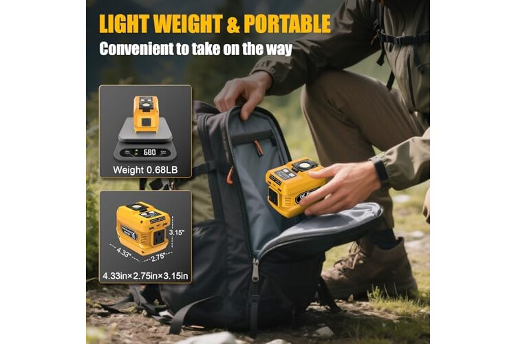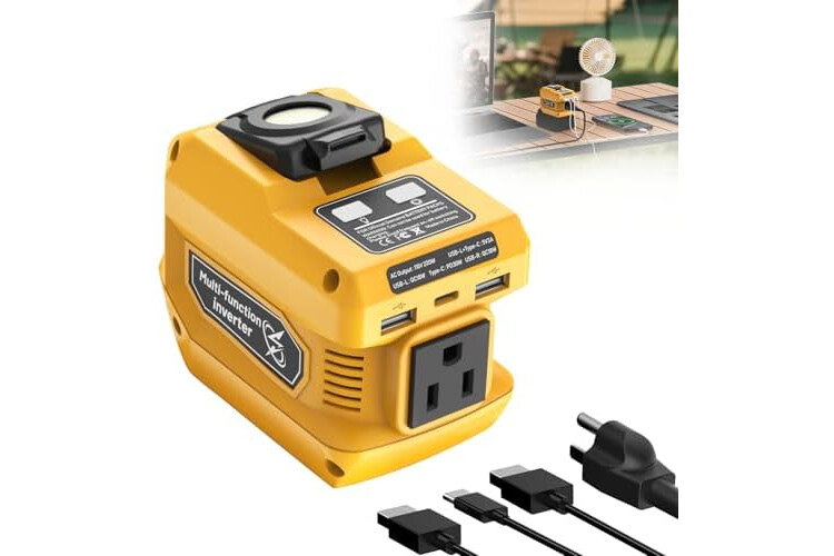 [Applicable Battery Models]: This power inverter is compatible with De-Walt 18V/20V lithium batteries (e.g., DCB206, DCB205, DCB204). With this battery inverter, provides portable power for outdoor adventures or emergency needs—anytime, anywhere. (Battery not included)