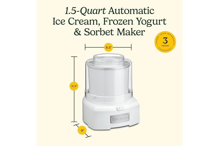 • LIMITED 3-YEAR WARRANTY: The BPA-free Cuisinart Ice Cream Maker Machine comes with a limited 3-year warranty.
