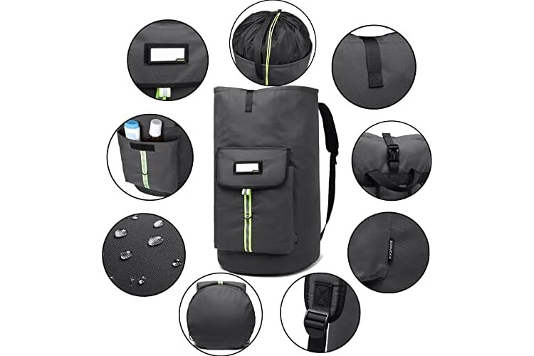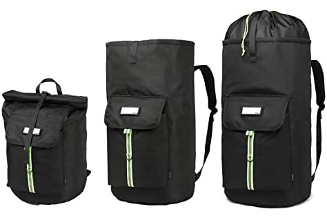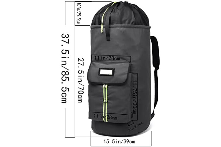[Large capacity & multi-pocket design】The laundry bag backpack measures 37.5 ''H*15.5 ''L and weighs 17.3oz. The top of the backpack is retractable and can be expanded up to 38" high. With a maximum capacity of 115 liters, it is larger than the average backpack. With a 11.75 "H*11 "L*2 " front pocket, it can hold laundry detergent, underwear, socks, laundry cards, and other accessories. The multi-pocket design makes it easier to find items by sorting them