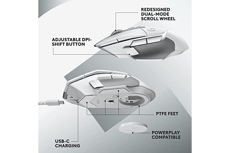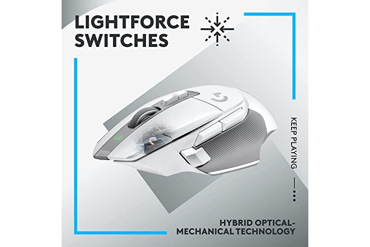 Logitech G502 X Lightspeed Wireless Gaming Mouse - LIGHTFORCE Hybrid Optical-Mechanical switches, Hero 25K Gaming Sensor, Compatible with PC - macOS/Windows - White