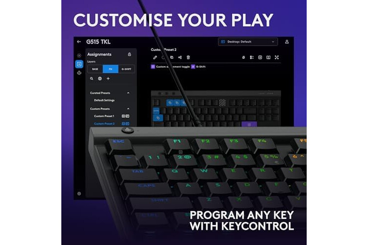 LIGHTSYNC RGB: Access ~16.8 M colors with G515 TKL to customize themes and unify all your Logitech G gear through G HUB