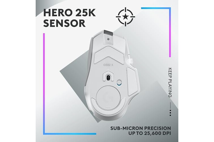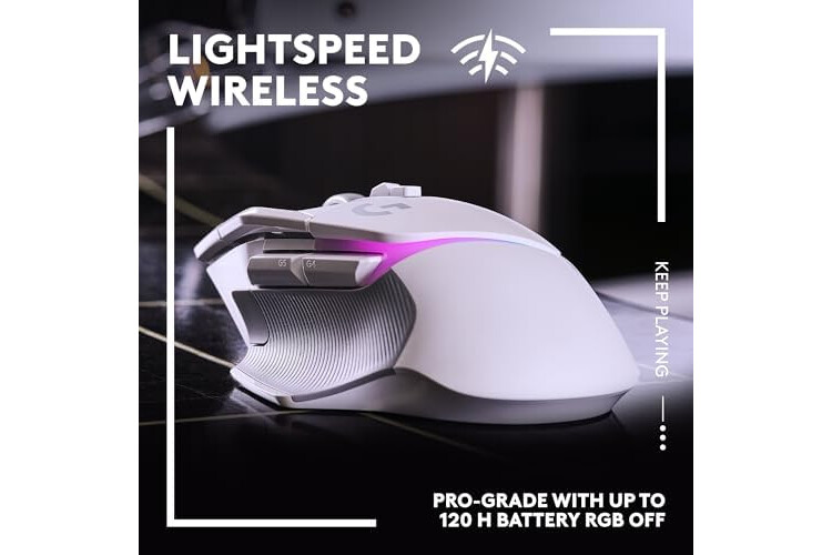 LIGHTSYNC RGB: This RGB gaming mouse features glowing 8-LED lighting that’s customisable and adapts as you game with startup/power-down effects and battery optimisation through active play detection