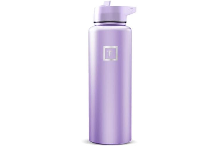 IRON °FLASK Camping & Hiking Hydration Flask with Straw, Wide Mouth Insulated Stainless Steel Sports Water Bottle - Lavender 40 oz - Straw (1 Lid)