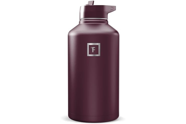 IRON °FLASK Camping & Hiking Hydration Flask with Straw, Wide Mouth Insulated Stainless Steel Sports Water Bottle - Burgundy 64 oz - Straw (1 Lid)
