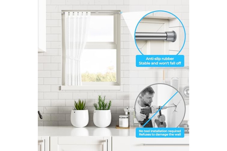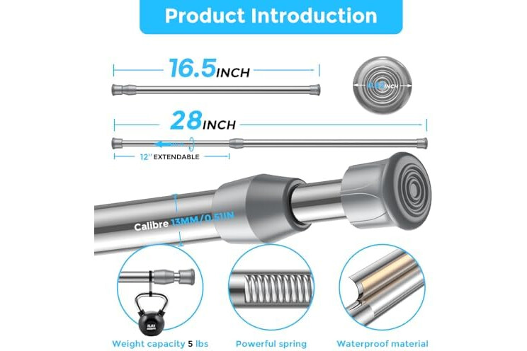 【QUALITY AND SIZE】Equipped with 2 small tension rods,The actual length of the product is 17-28 inches. Note that the actual length is not the best length range. It is recommended to use the range of 18-26 inches and a maximum load-bearing capacity of 5 pounds.