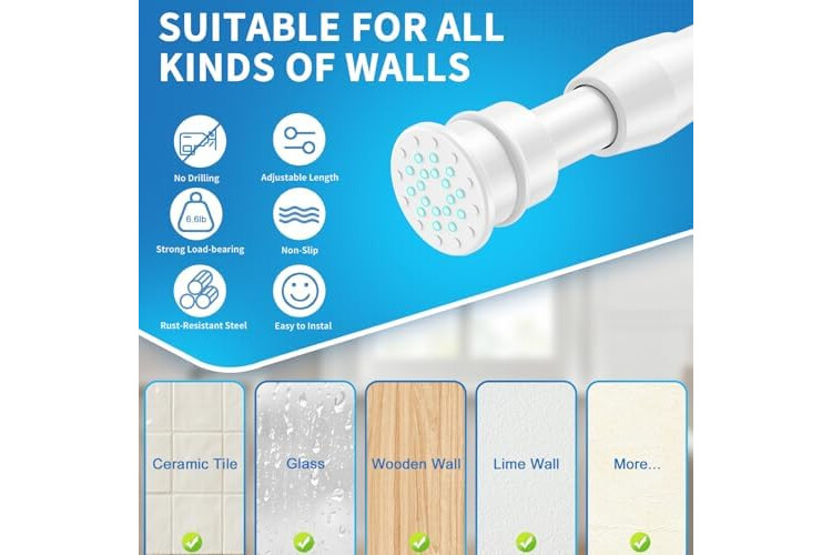 【Upgrade Design 】The newly designed polka dot rubber head,Greatly enhance the slip resistance and friction in contact with the wall, to prevent the tension rod fall down.