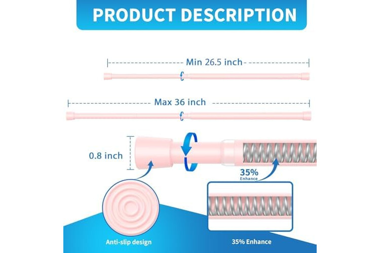 【Premium Material】The spring tension rods body is made of sturdy 50CrVA high carbon steel material, with an internal 2.5MM reinforced spring providing a support force of 6.6 pounds.