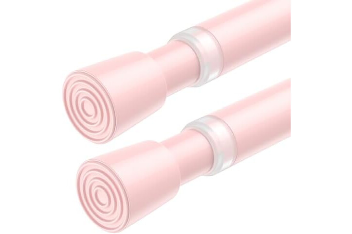 AIZESI 2 Pack Tension Curtain Rod for Windows 26.5 to 36 inch, Adjustable Expandable Pressure Spring Curtain Rod No Drilling, Pink Curtain Rod for Bedroom Doorway Closet Door