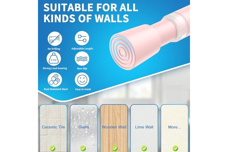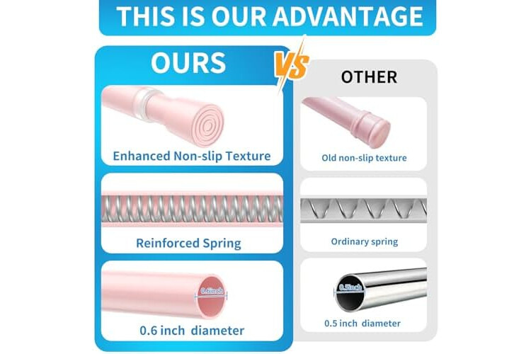 【Anti-slip Reinforcement】The head of the tension rods is made of the latest anti-slip material, which is soft and does not damage the wall surface, increasing the friction by 53% under the same contact area.