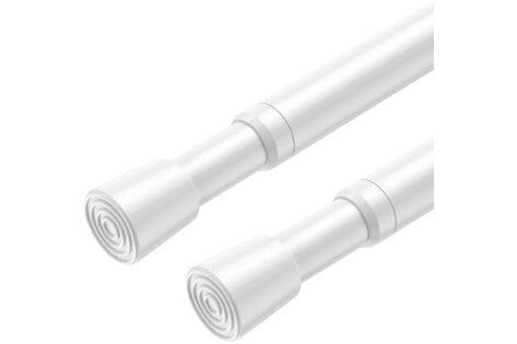 AIZESI 2 Pack Spring Tension Curtain Rod 32 to 58 inch Adjustable Curtain Rods No Drilling Expandable Spring Loaded Curtain Rod for Windows Doors Kitchen Curtains, White