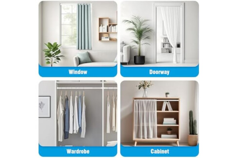 【No-Hole Required】 This extendable curtain rod is suitable for small windows, door curtains, kitchens, wardrobes, bathrooms, and various other home settings from 32 to 58 inches. The installation process requires no tools and does not damage the wall.