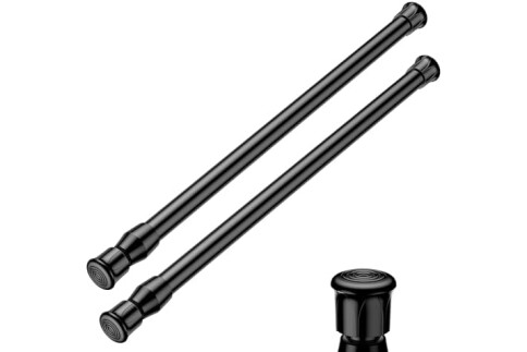 AIZESI 2PCS Black Tension Rod 12 to 19 Inch Spring Tension Rods Short Curtain Rods, Adjustable Small Tension Rod Spring Tension Curtain Rod for Windows Closet Cupboard