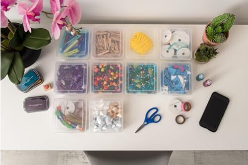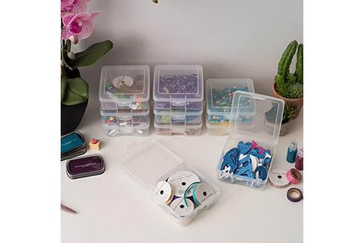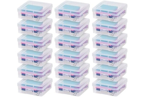 IRIS USA Pencil Case Boxes, 18-Pack, |Made in USA|, Plastic Bead Organizing Containers with Snap Lid for Arts, Crafts, Ephemera, Stickers, & Dance Cheer, Clear - Small