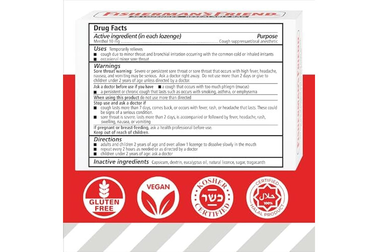 Legendary Relief Since 1865: Fisherman’s Friend delivers strong, reliable throat relief for over 165 years. Using the original menthol and eucalyptus formula, these cough drops help temporarily soothe sore throats and help suppress persistent coughs