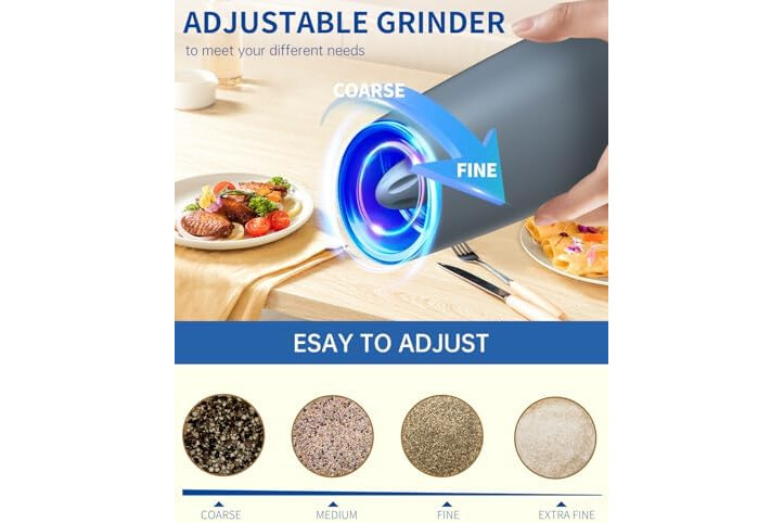 【Adjustable Coarseness】This electric pepper grinder set can meet your grinding needs. Easily adjust the core to achieve the perfect coarseness for grinding salt, pepper, or any other seasoning of your choice. The electric salt grinder refillable is made of a high-quality ceramic grinding core to help you retain the original flavor of the spices