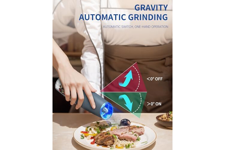 【Automatic Operation】The gravity salt and pepper grinder set electric uses advanced technology for easy one-handed operation. Simply flip the grinder to enjoy freshly ground spices without the need for manual grinding or pressing buttons. This salt and pepper grinder is a good helper for kitchens, restaurants, parties and outdoor picnics