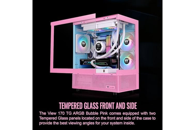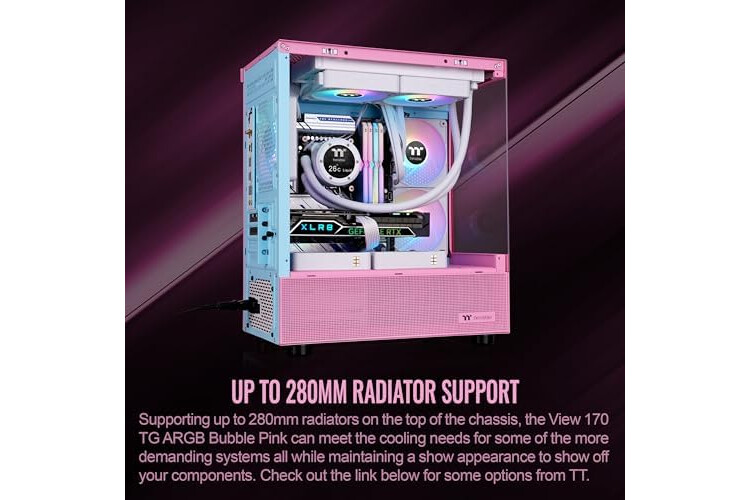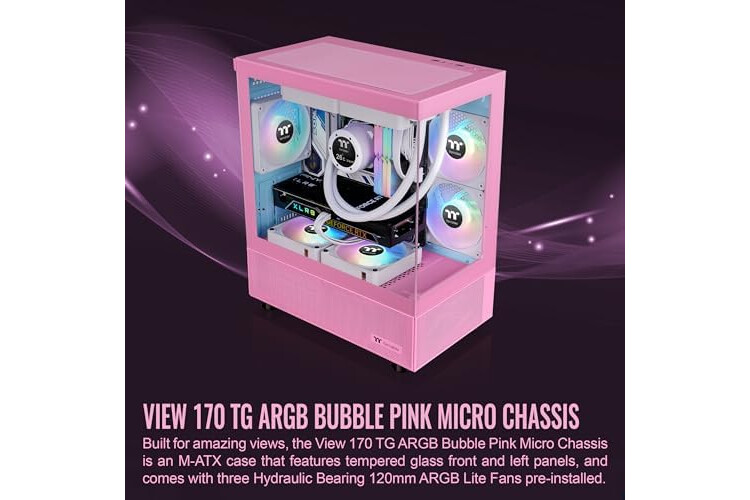 Thermaltake View 170 TG ARGB m-ATX Chassis; 3x120mm ARGB Lite Fans Included; 280mm Radiator Support; 340mm GPU Clearance; 160mm Air Cooler Max Height; Bubble Pink; CA-1Z4-00MAWN-01