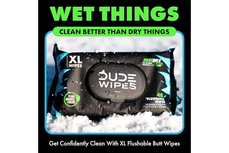 DUDE Wipes - Flushable Wipes - 1 Pack, 48 Count - MentHOLE XXtreme - Extra-Large - Menthol Infused for a Cooling Sensation - Septic and Sewer Safe