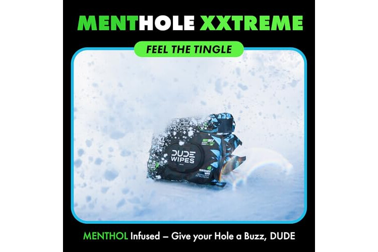 MENTHOL INFUSED COOLING WIPES: Menthol-infused flushable wipes built for a clean you can FEEL. Each XL wipe delivers a crisp menthol feel and a cooling sensation that lets you know you've entered XXtreme clean territory. Due to the cooling nature, MentHOLE XXtreme wipes may not be suitable for sensitive areas
