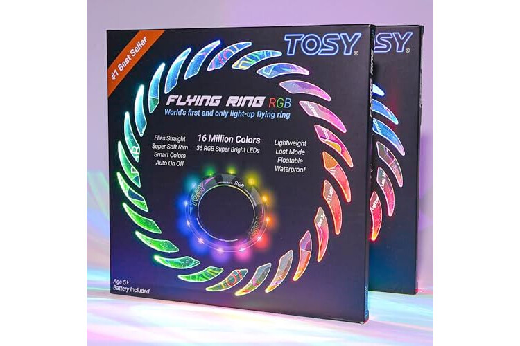 TOSY Flying Ring - 36 RGB Multicolor or 12 Monocolor LEDs, Super Bright, Lost Mode, Auto Light Up, Easter Basket Stuffers Gift for Kid/Teen/Boy/Girl, Safe, Waterproof, Pool/Beach/Camping Toy