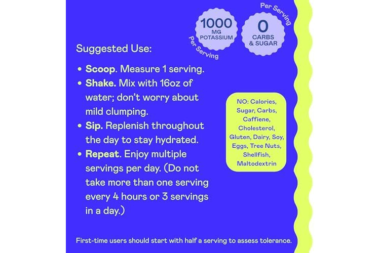 KETO ELECTROLYTE SUPPLEMENT – Keto K1000 electrolyte powder is a high potassium supplement designed to help with hydration, increase cellular energy, and beat the Keto flu. With 1,000mg of potassium, this trace mineral blend is tailor-made for keto and intermittent fasting enthusiasts. Simply mix one scoop into 16 oz of water. Avoid exceeding one serving every four hours or three servings a day. If you're new to the product, start with half a serving to ensure tolerance. Use as directed.