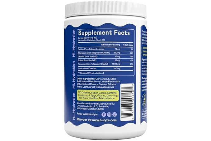 Hi-Lyte Keto K1000 Electrolytes Powder | Raspberry Lemon | Hydration Supplement Drink Mix | Boost Energy & Beat Leg Cramps | No Sugar, No Maltodextrin | 120 Servings