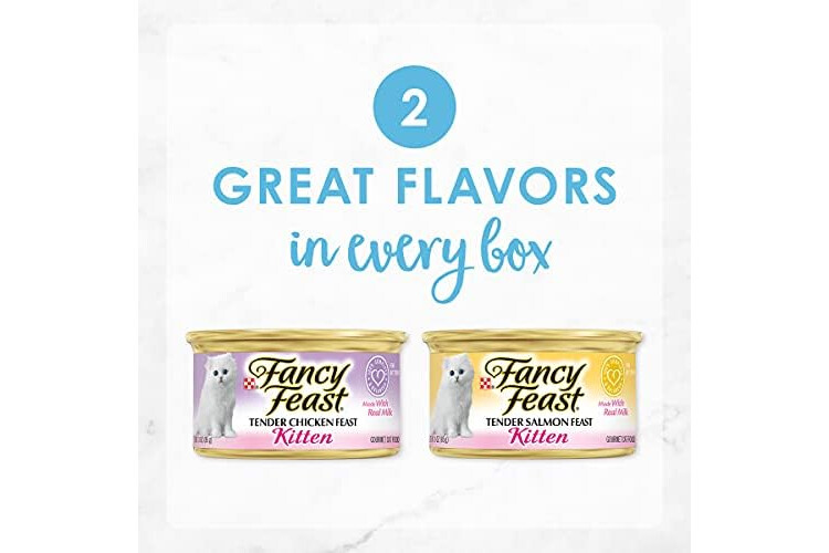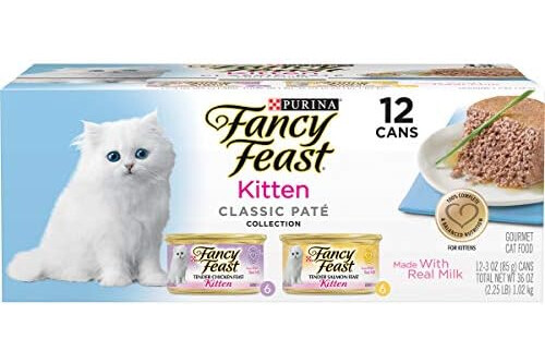 Purina Fancy Feast Grain Free Pate Wet Kitten Food Variety Pack, Kitten Classic Pate Collection Chicken & Salmon - (2 Packs of 12) 3 oz. Cans