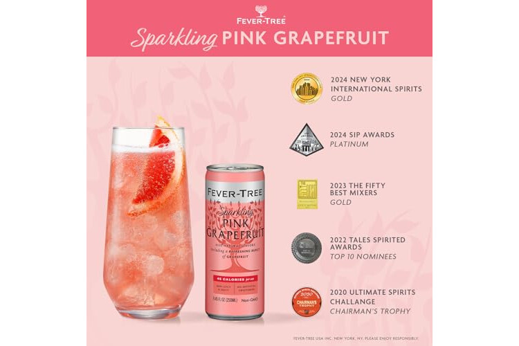 Fever-Tree Sparkling Pink Grapefruit – Premium Soda Mixer for Cocktails and Mocktails, 8.45 fl oz Cans, Pack of 4 – Naturally Sourced, Non-GMO