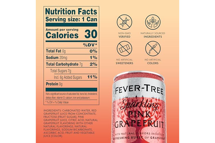 Fever-Tree Sparkling Pink Grapefruit – Premium Soda Mixer for Cocktails and Mocktails, 5.1 fl oz Cans, Pack of 24 – Naturally Sourced, Non-GMO
