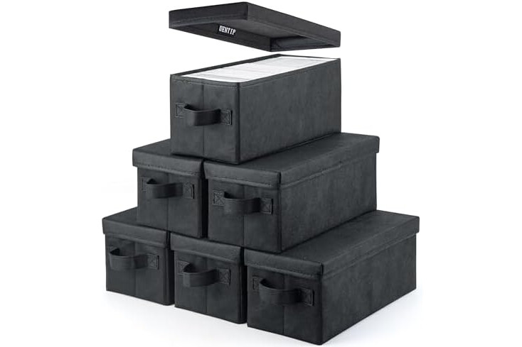 UENTIP CD Storage Box - Pack of 6 CD Case Storage - 13.2" x 5.9" x 5.3", Container holds 30 CDs in full jewel cases, 60 CDs in slim cases, and 165 discs in CD sleeves - Black (6pack-black)