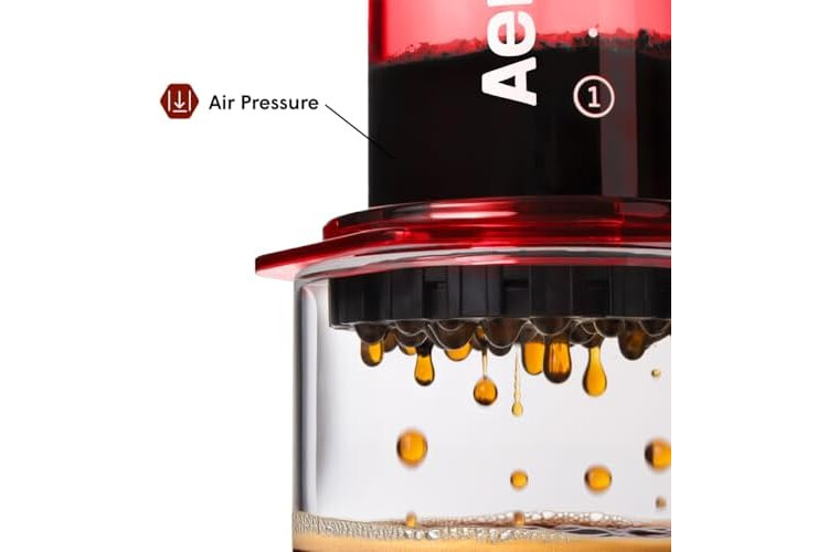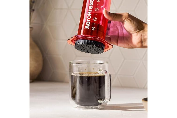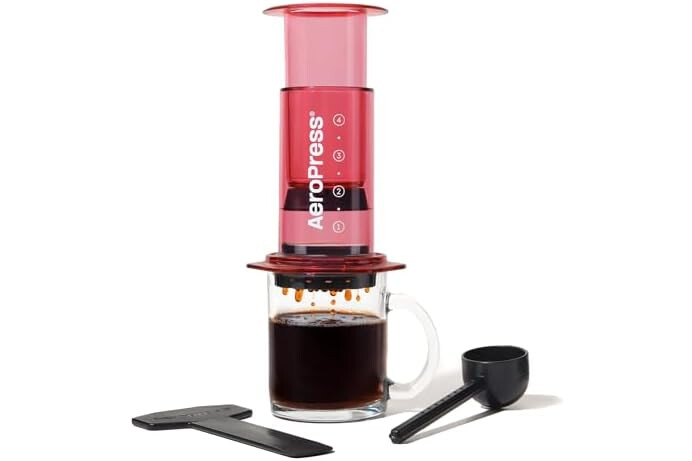 AeroPress Clear Red Coffee Press - All-in-One French Press, Pour-Over & Espresso Style Manual Brewer, 2 Min Brew for Less Bitterness, More Flavor, Small Portable Coffee Maker, Travel & Camping