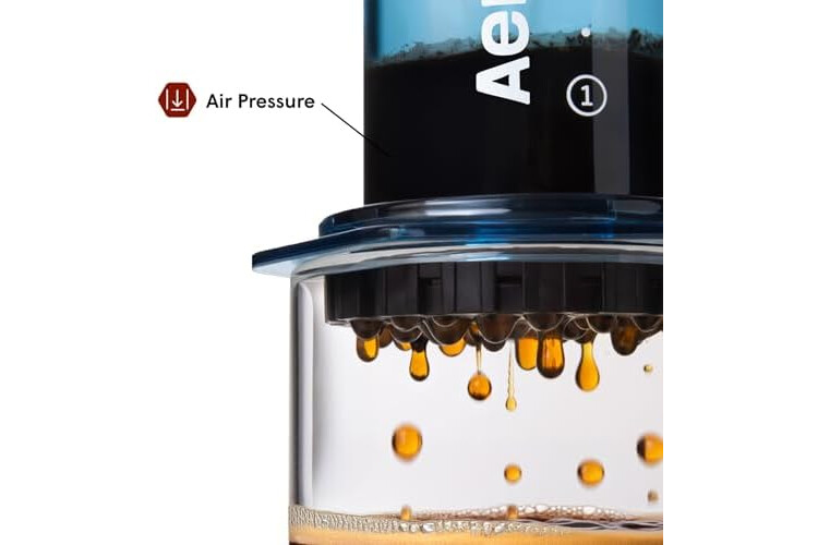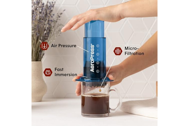 AeroPress Clear Blue Coffee Press - All-in-One French Press, Pour-Over & Espresso Style Manual Brewer, 2 Min Brew for Less Bitterness, More Flavor, Small Portable Coffee Maker, Travel & Camping