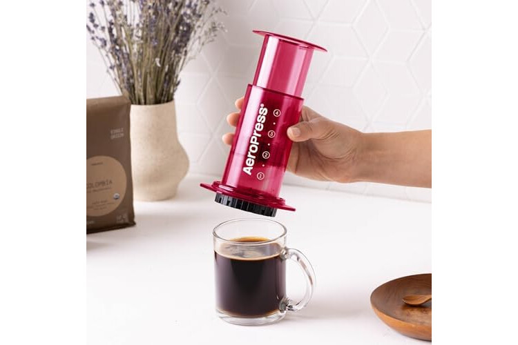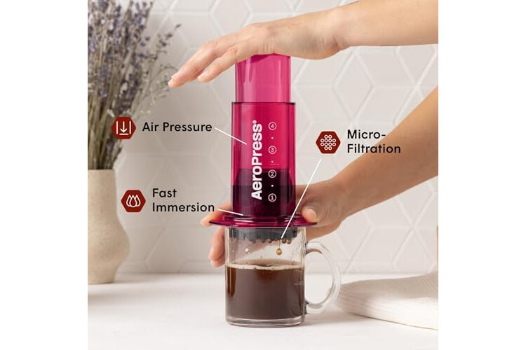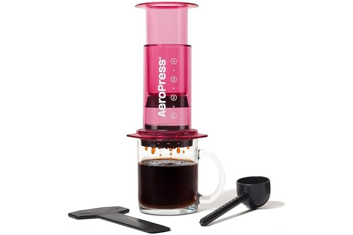 AeroPress Clear Pink Coffee Press - All-in-One French Press, Pour-Over & Espresso Style Manual Brewer, 2 Min Brew for Less Bitterness, More Flavor, Small Portable Coffee Maker, Travel & Camping