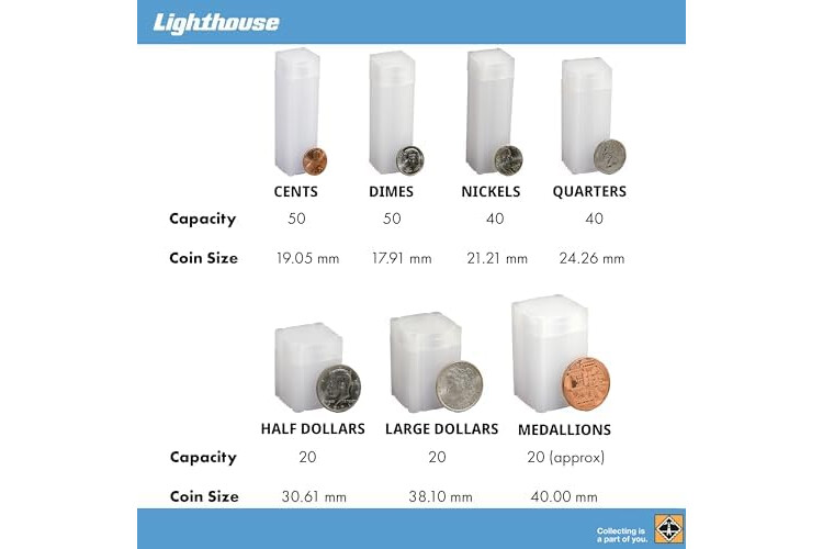 The premier tube of choice for secure storage, LIGHTHOUSE square coin tubes stack neatly and easily and wont roll away while handling