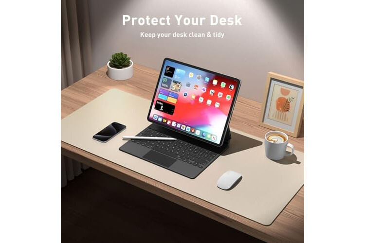 Aothia Leather Desk Pad Protector, Office Mat, Large Mouse Pad, Non-Slip PU Leather Blotter, Laptop Desk Pad, Waterproof Writing Pad for Office and Home (Beige, 31.5" x 15.7")