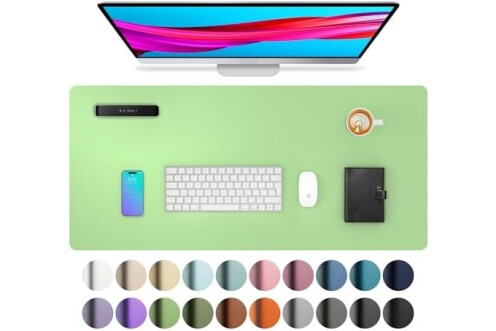Aothia Leather Desk Pad Protector, Mouse Pad, Office Desk Mat, Non-Slip PU Leather Desk Blotter, Laptop Desk Pad, Waterproof Desk Writing Pad for Office and Home (23.6" x 13.7", Foam Green)