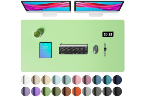 Aothia Faux Leather Desk Mat – Large Mouse Pad, Non-Slip PU Leather Blotter, Waterproof Writing Surface for Office and Home (Foam Green, 47.2" x 23.6")