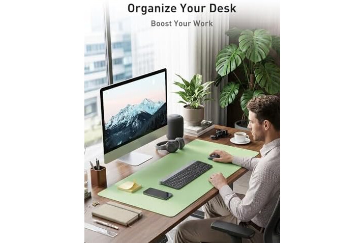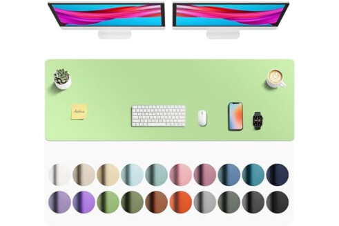 Aothia Faux Leather Desk Mat - Non-Slip PU Leather Desk Blotter, Waterproof Writing Surface, Large Desk Pad for Office & Home (Foam Green, 55" x 17")
